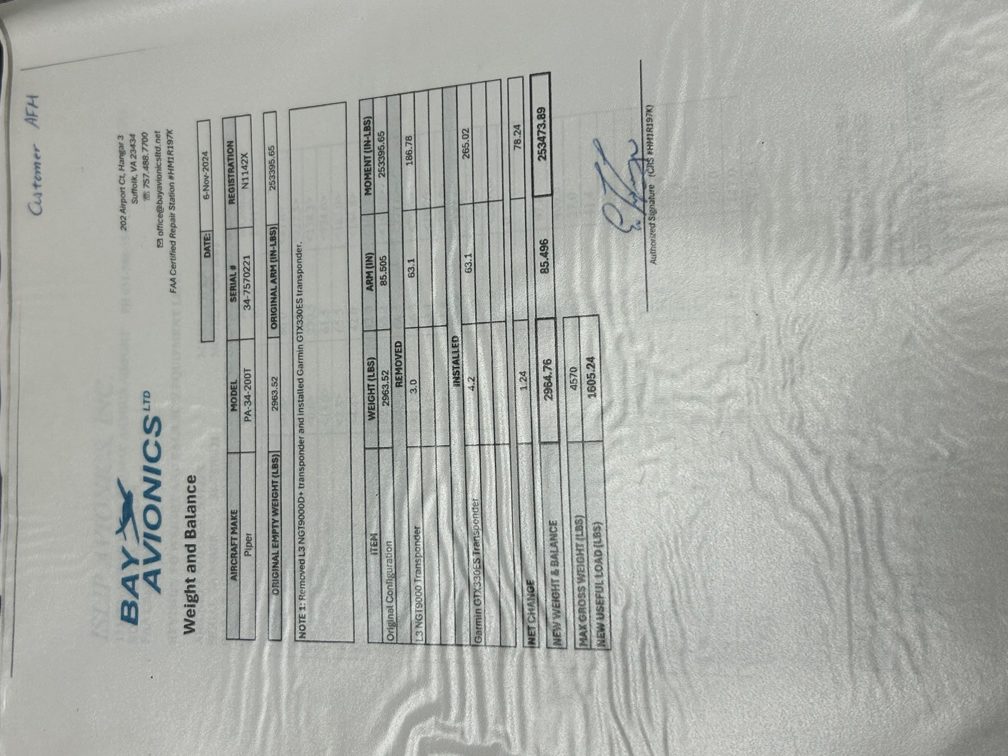 - Six seat, club seating. The useful load before any usable fuel is added is 1605 lbf per the weight and balance cert.